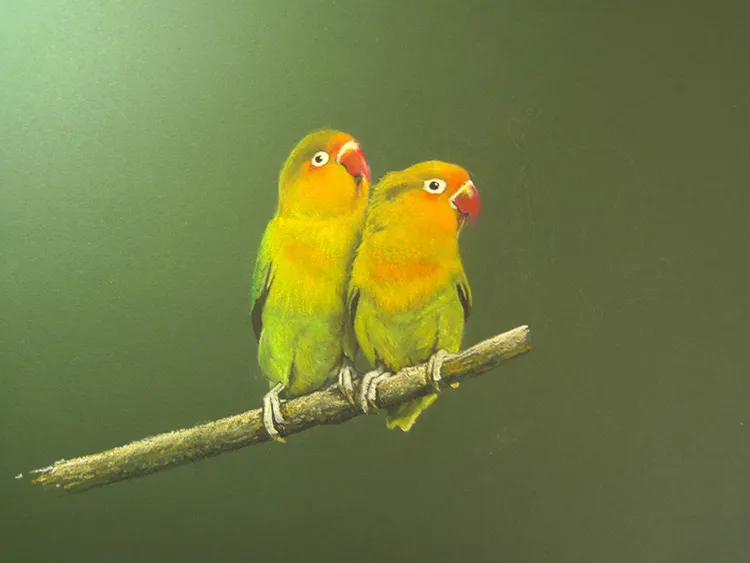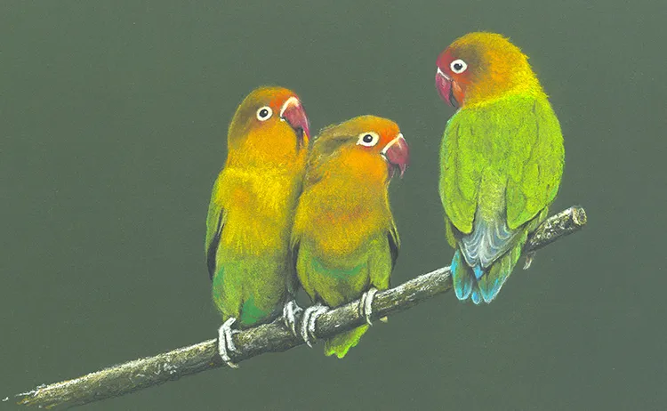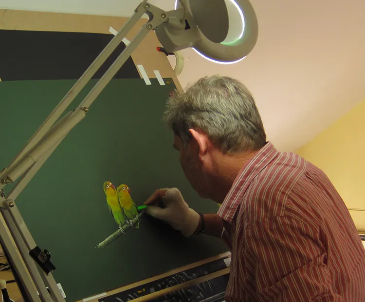 Working on the finishing touches by softening the tail feathers with a pencil eraser.