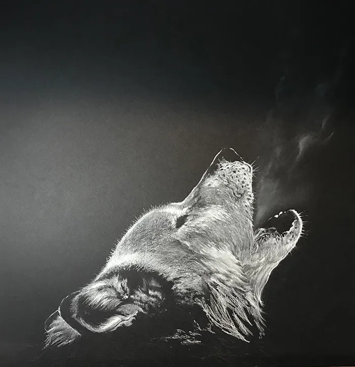 Working down the jaw line of the wolf.