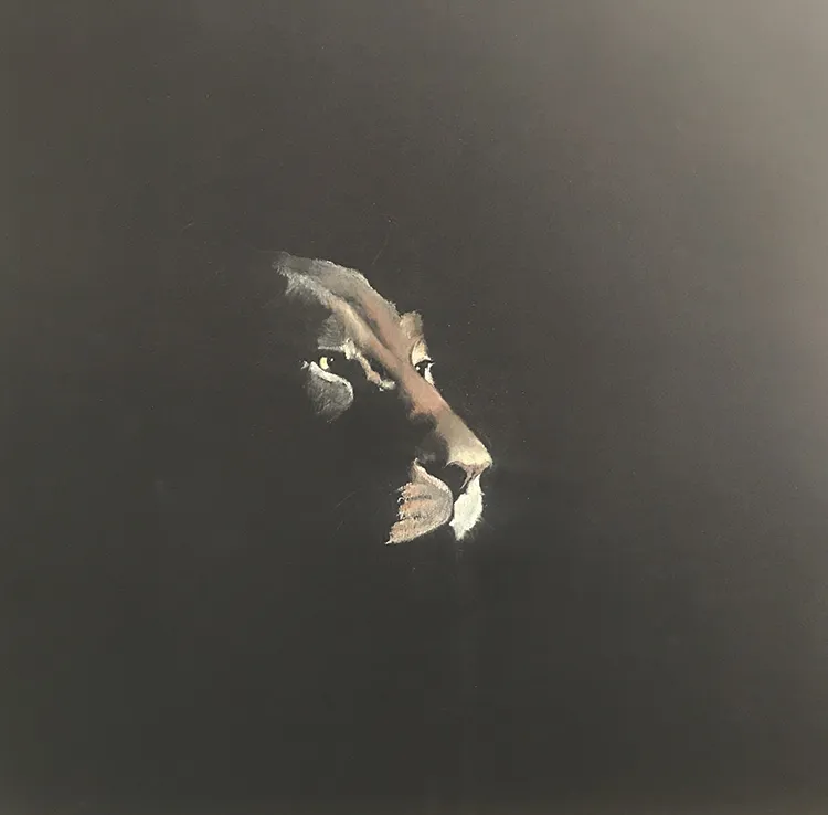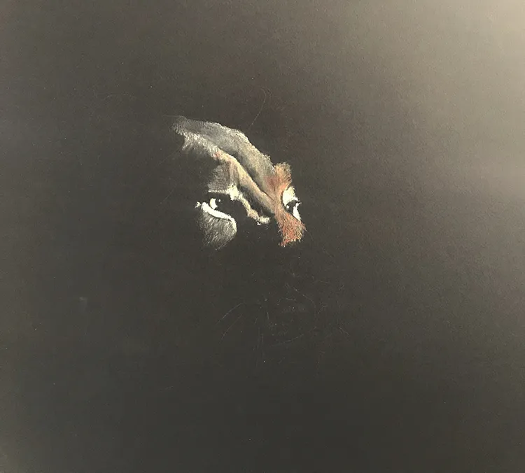 Working on the cheak and whiskers before moving onto the chin and neck as she stretches forward