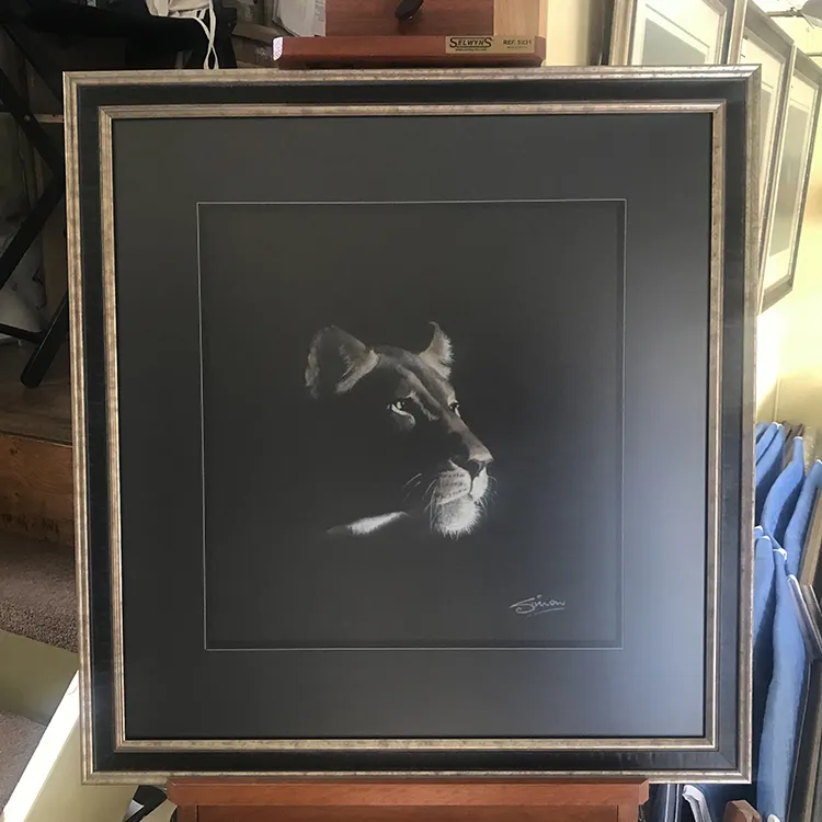 Framed and mounted.