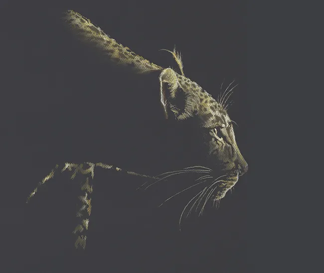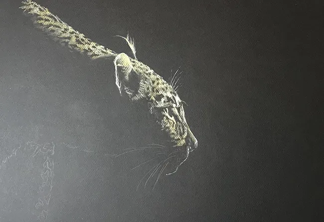 This is a specimen sketch of dawn light catching the features of a prowling leopard