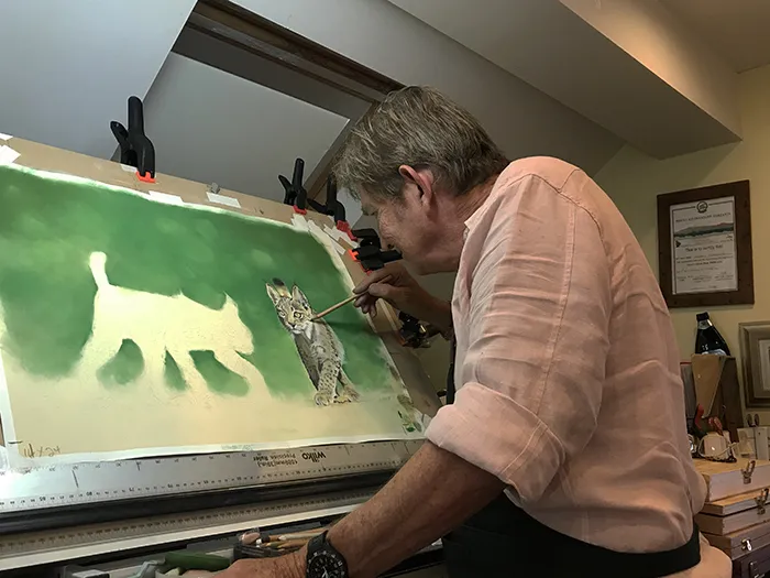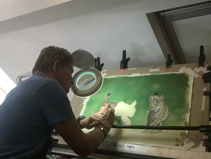 I'm now working from the chin and its ruff, down its body to its leading paw