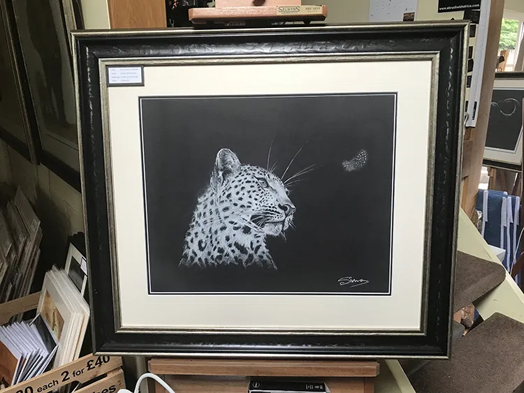 Framed with a double mount and non reflective glass