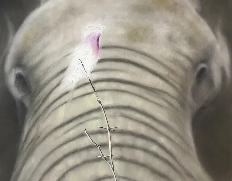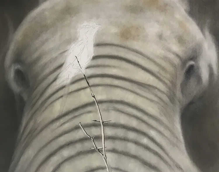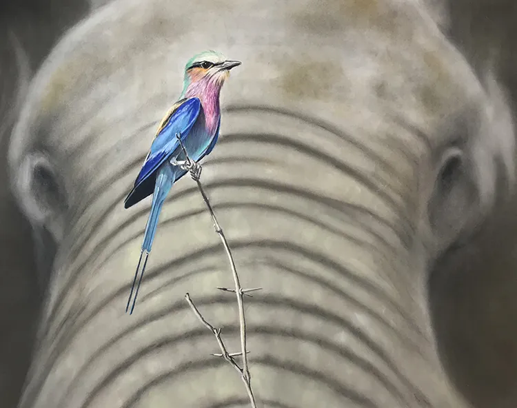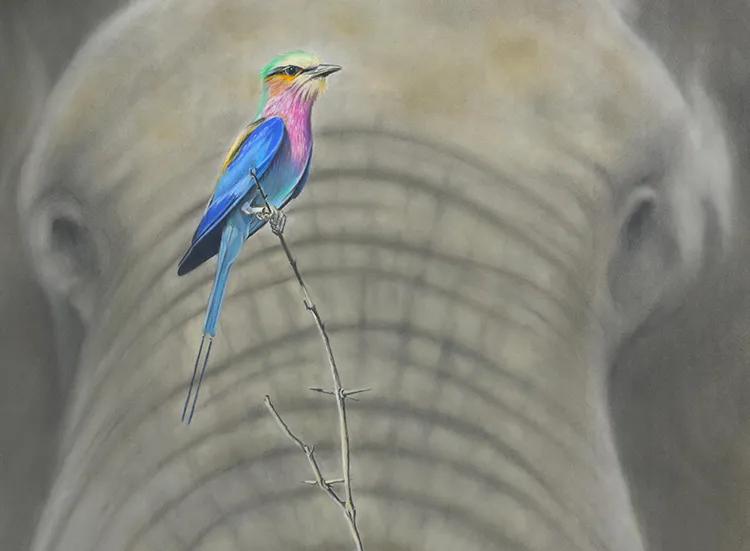 Elephant is beginning to come along, working on the twig before starting on the Roller