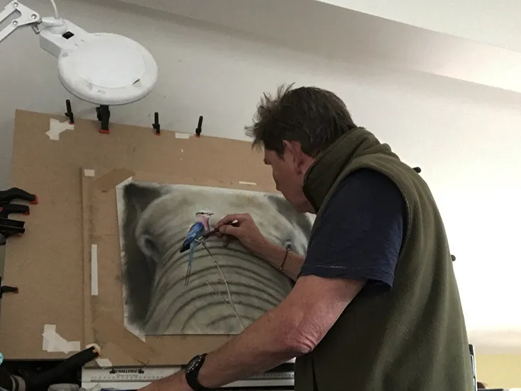 Putting the finishing touches on the Roller before moving back to the elephant.