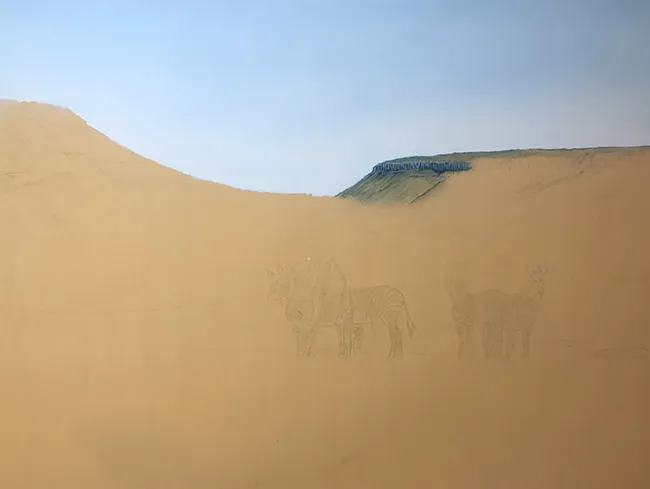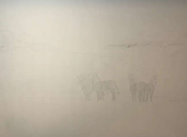 I marked out the background scenery along with the small herd of Hartman's zebra