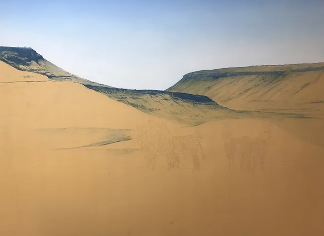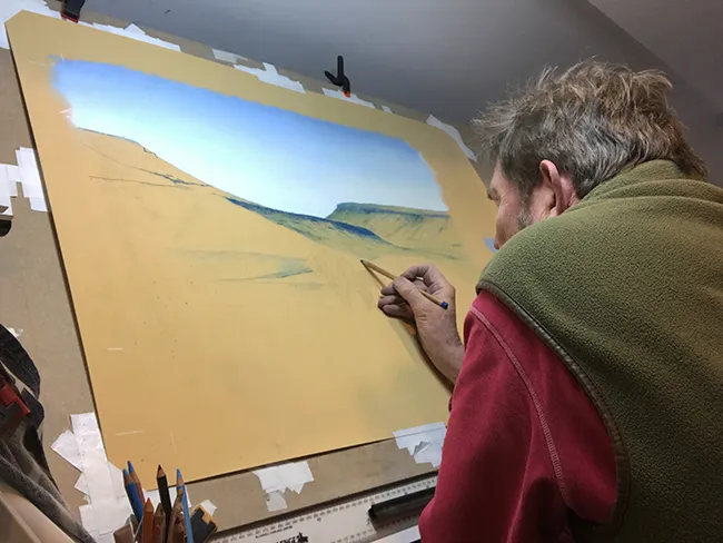 I'm starting to add the distant escarpment which moves left to the right from the centre.