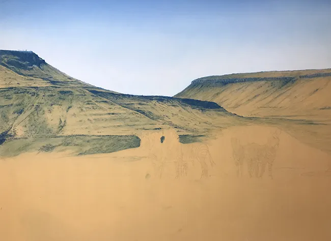 This is a sketch of a small herd of Hartman's Mountain Zebra in Damaraland, Namibia