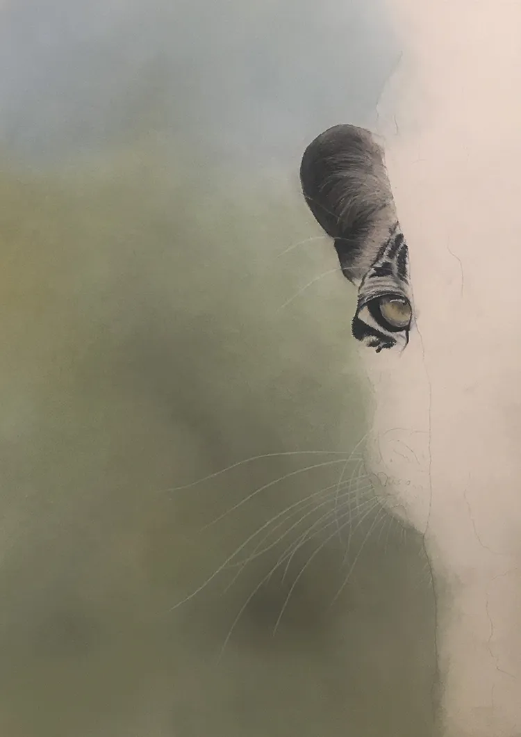 Both the ear and eye have been added as I continue to work on the cheek and whiskers.