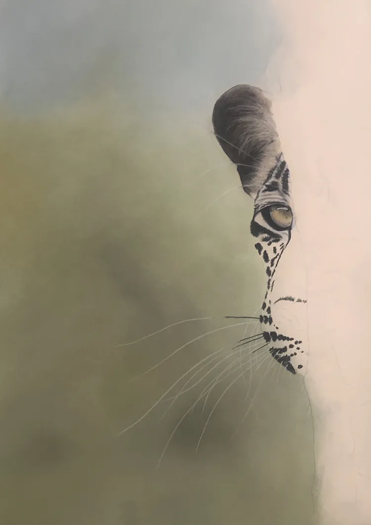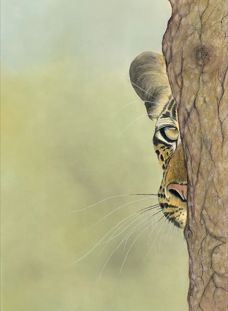 Nearly finished the leopard peeping around the corner, will then add the bark of the tree on the right side of the image
