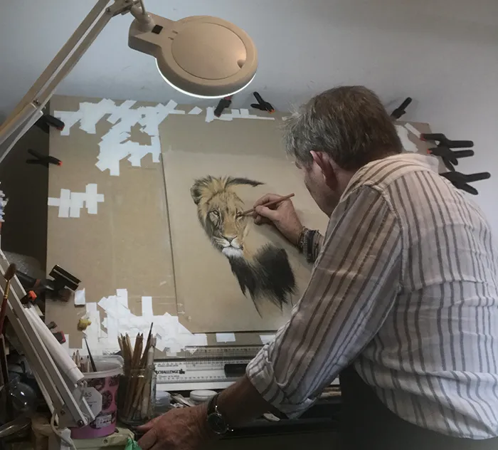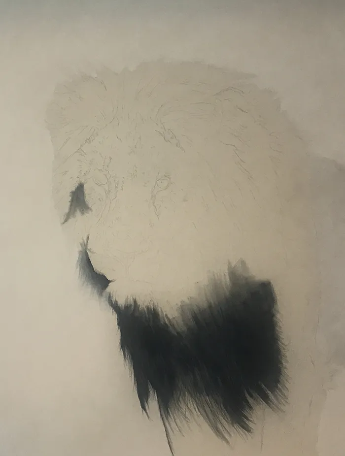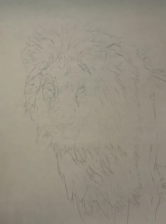 I started this portrait of the lion by lightly sketching in some rough outlines