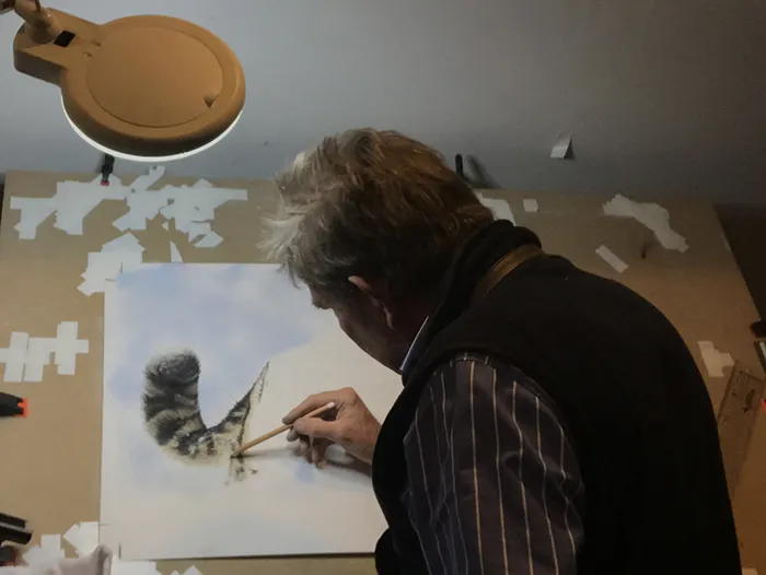 Gradually I'm working down the tail onto the leopard's back leg before moving to its back