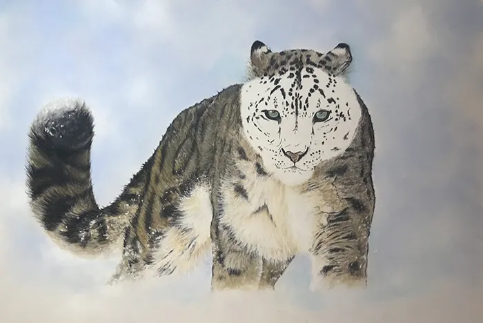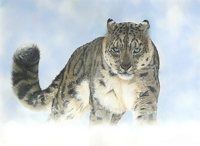This is an image of a rare adult snow leopard slowly ploughing it's way through deap snow. It's another sketch that I've attempted of an animal that I've not had the privilege of seeing in the wild and is the second in my World Leopard series.