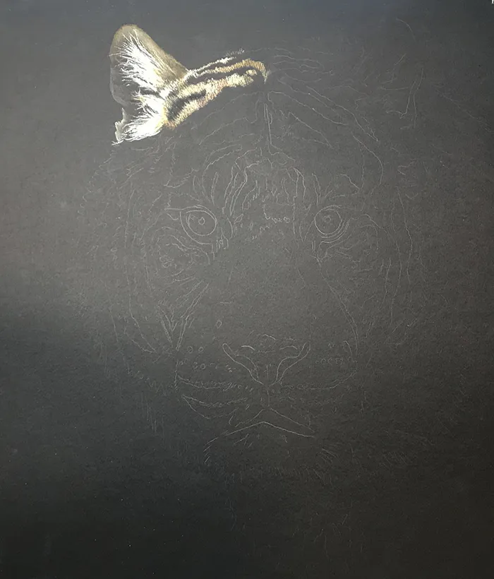 Below are a sequence of photographs showing how I sketched the above Tiger image