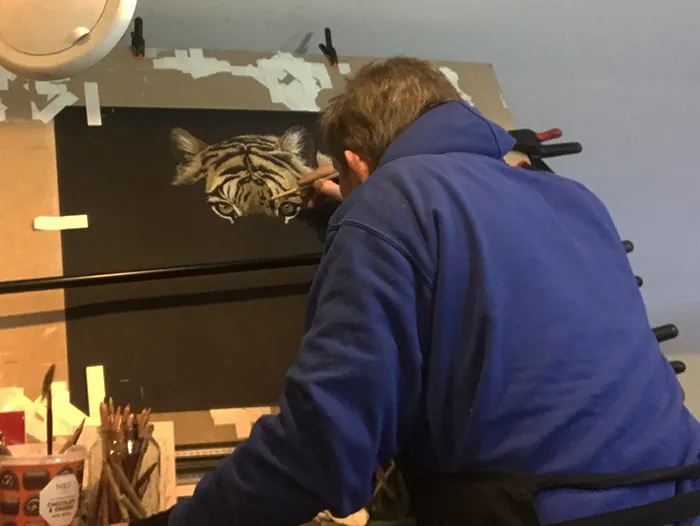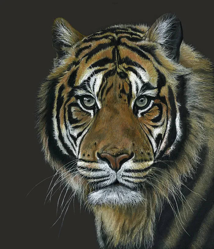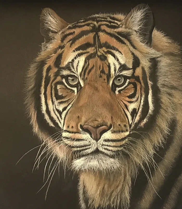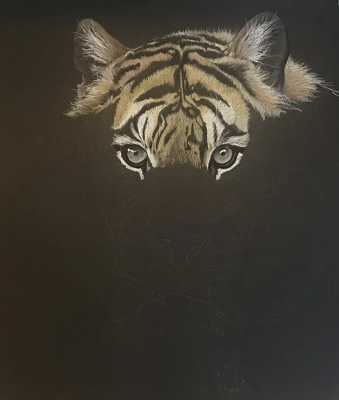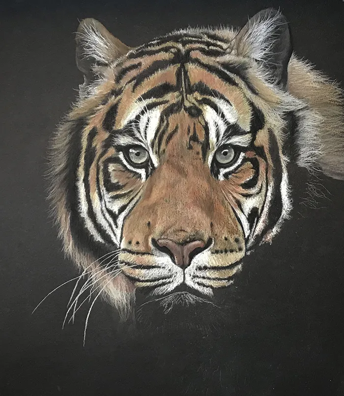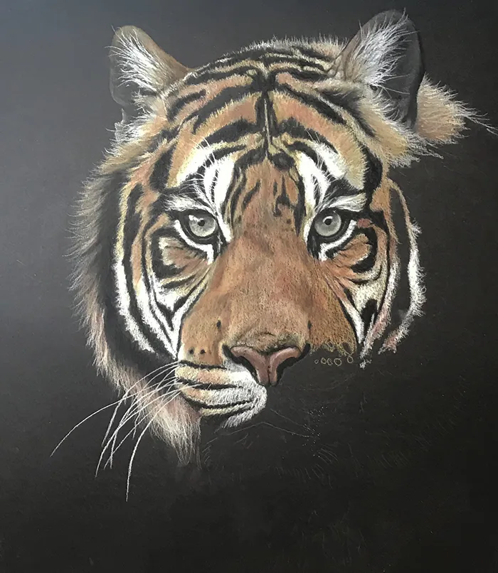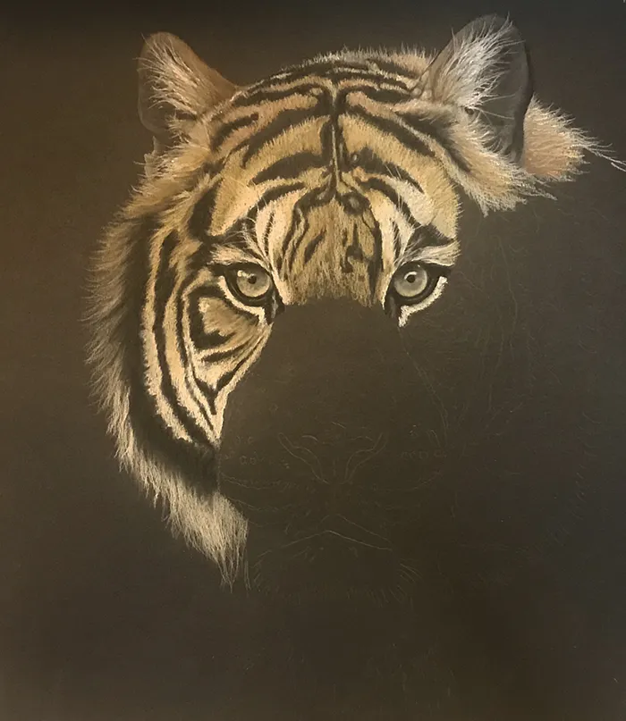 I'm adding highlights to the brow of the tiger as it stares at me!!