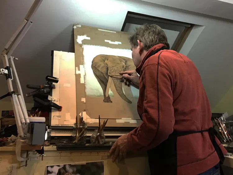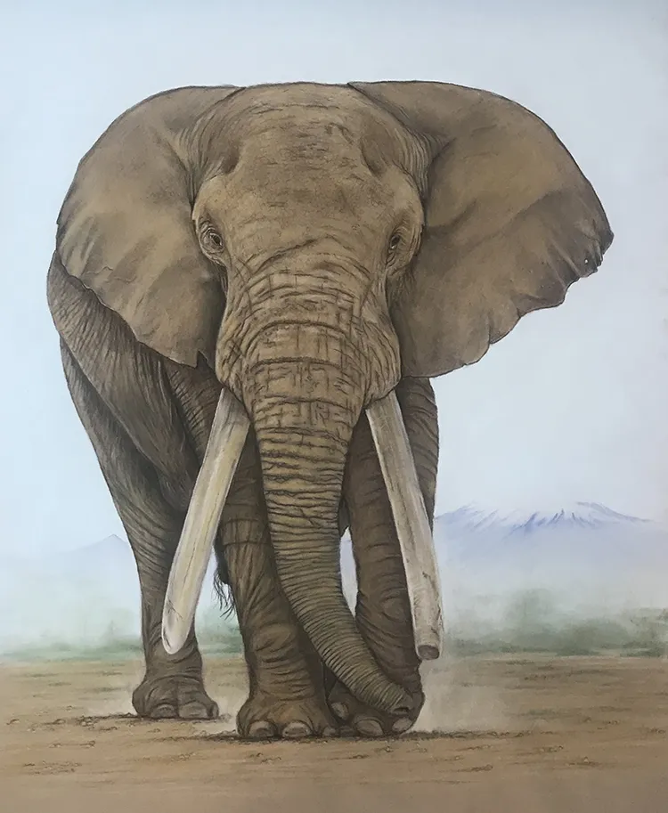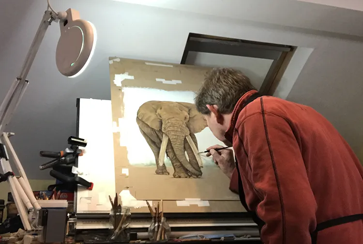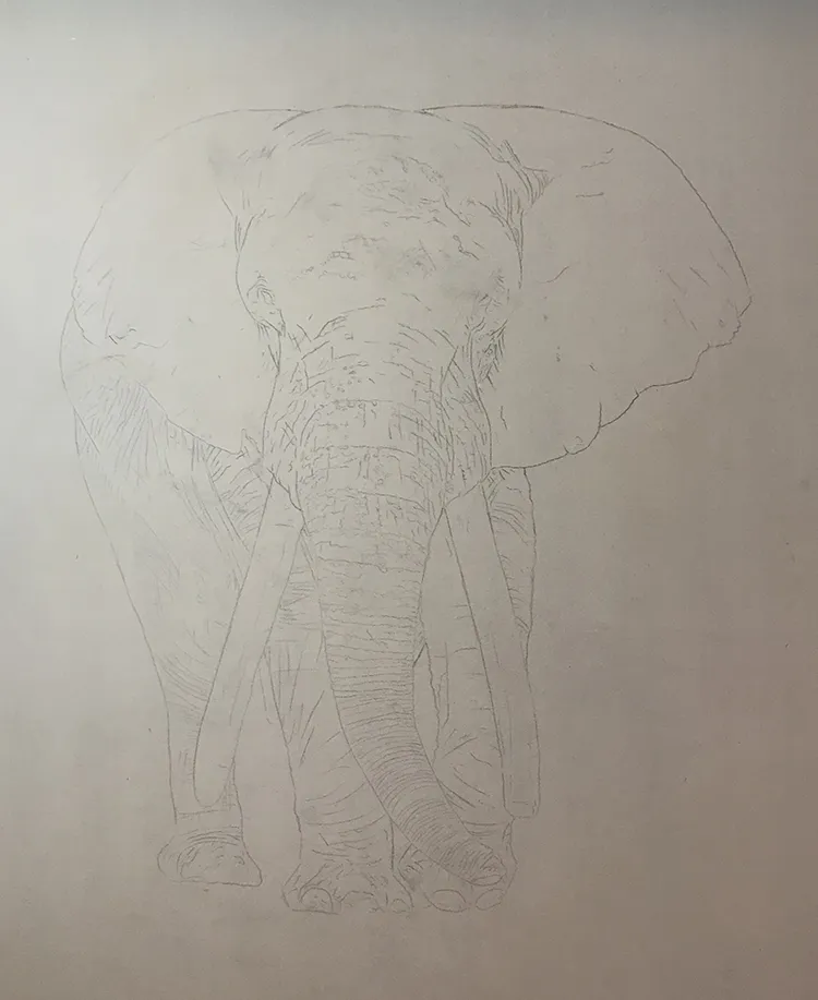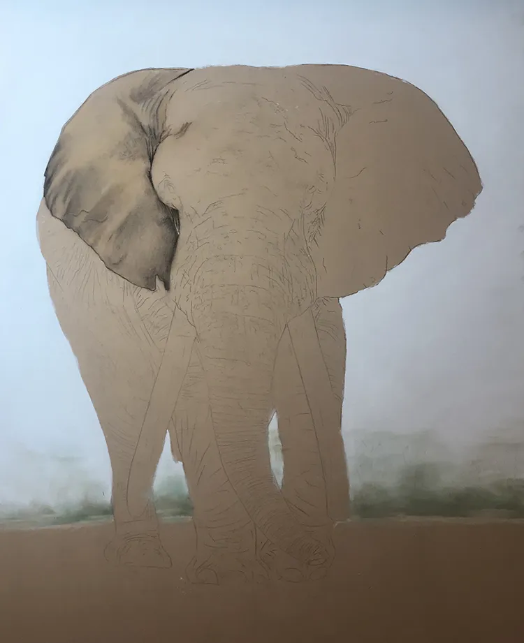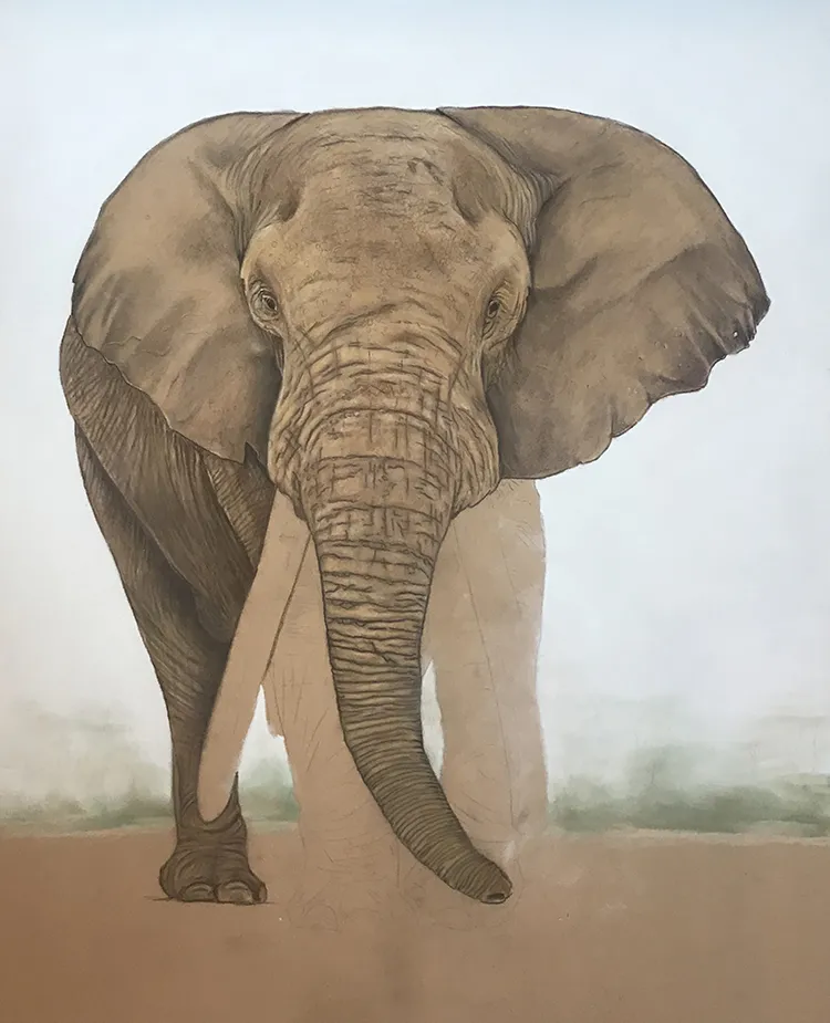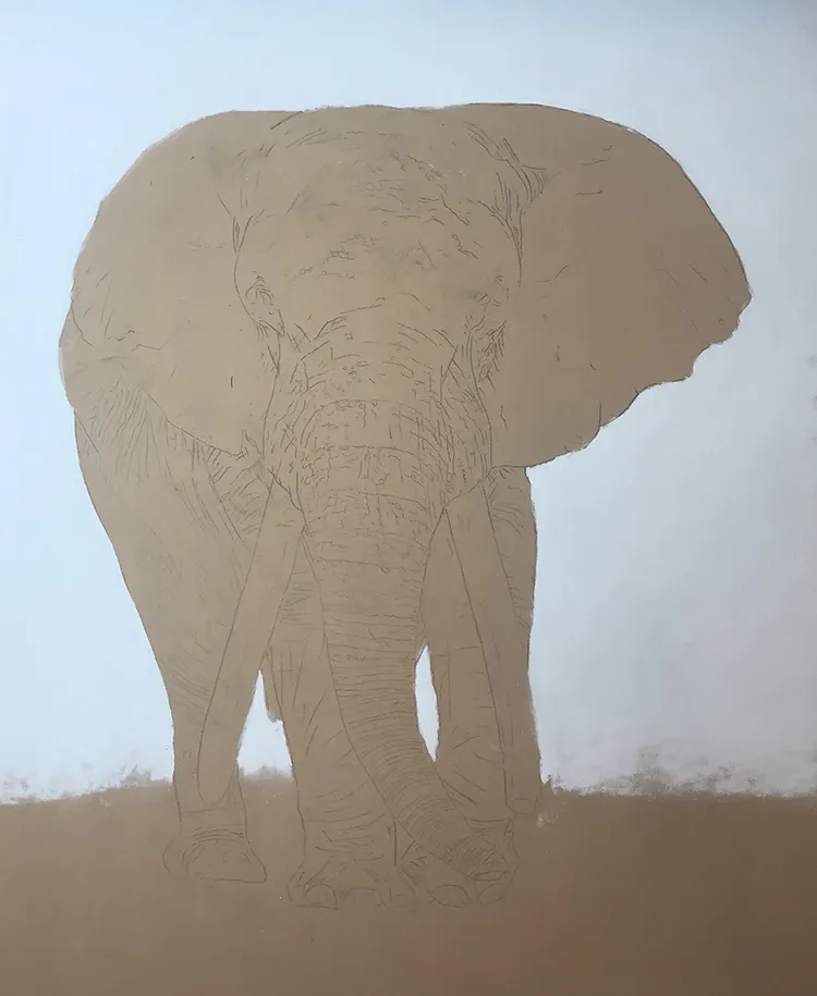I gradually started to fill in his leading leg and then moved to his distinctive left tusk