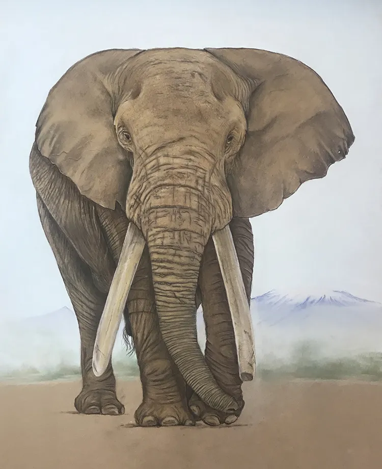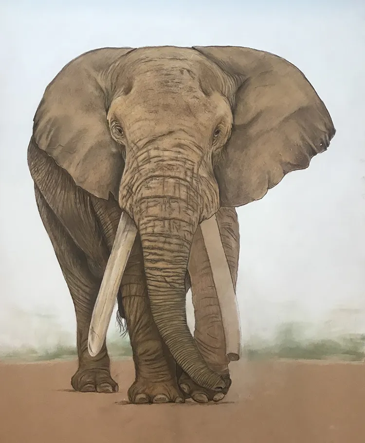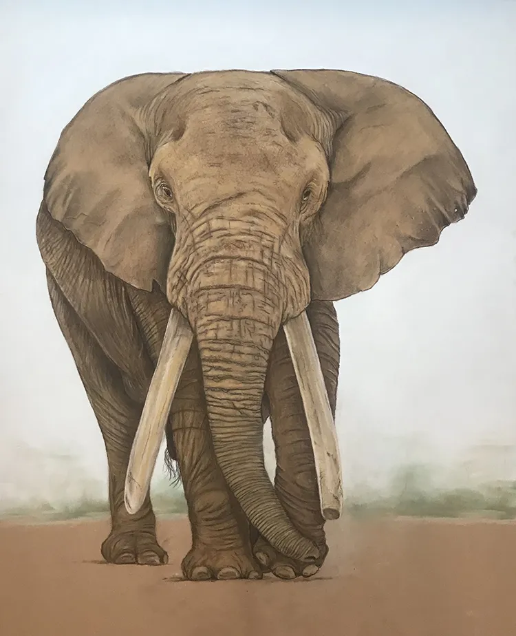 Using a fine eraser to add nicks a scrapes in the tusk by removing the top layer, to show the lower dark layer.