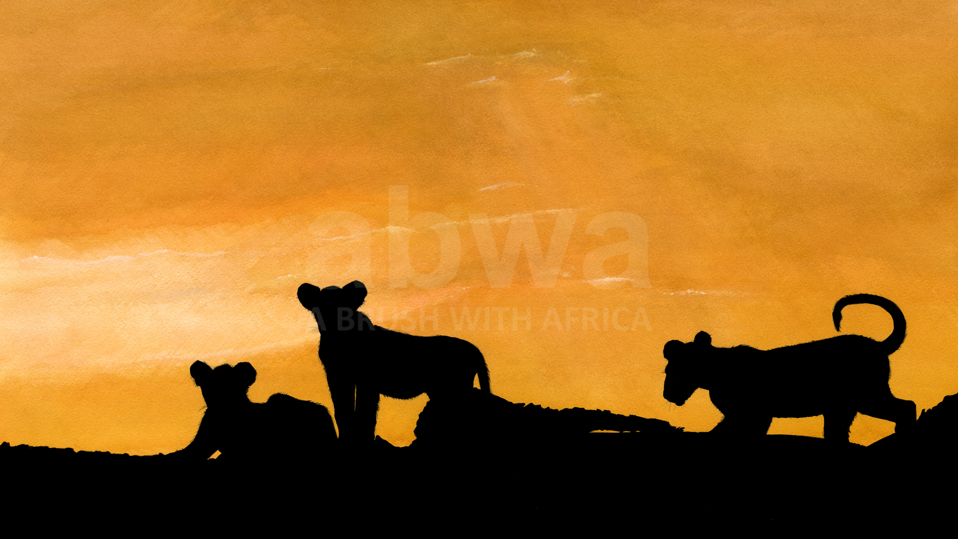 Young lion cubs playing at dawn