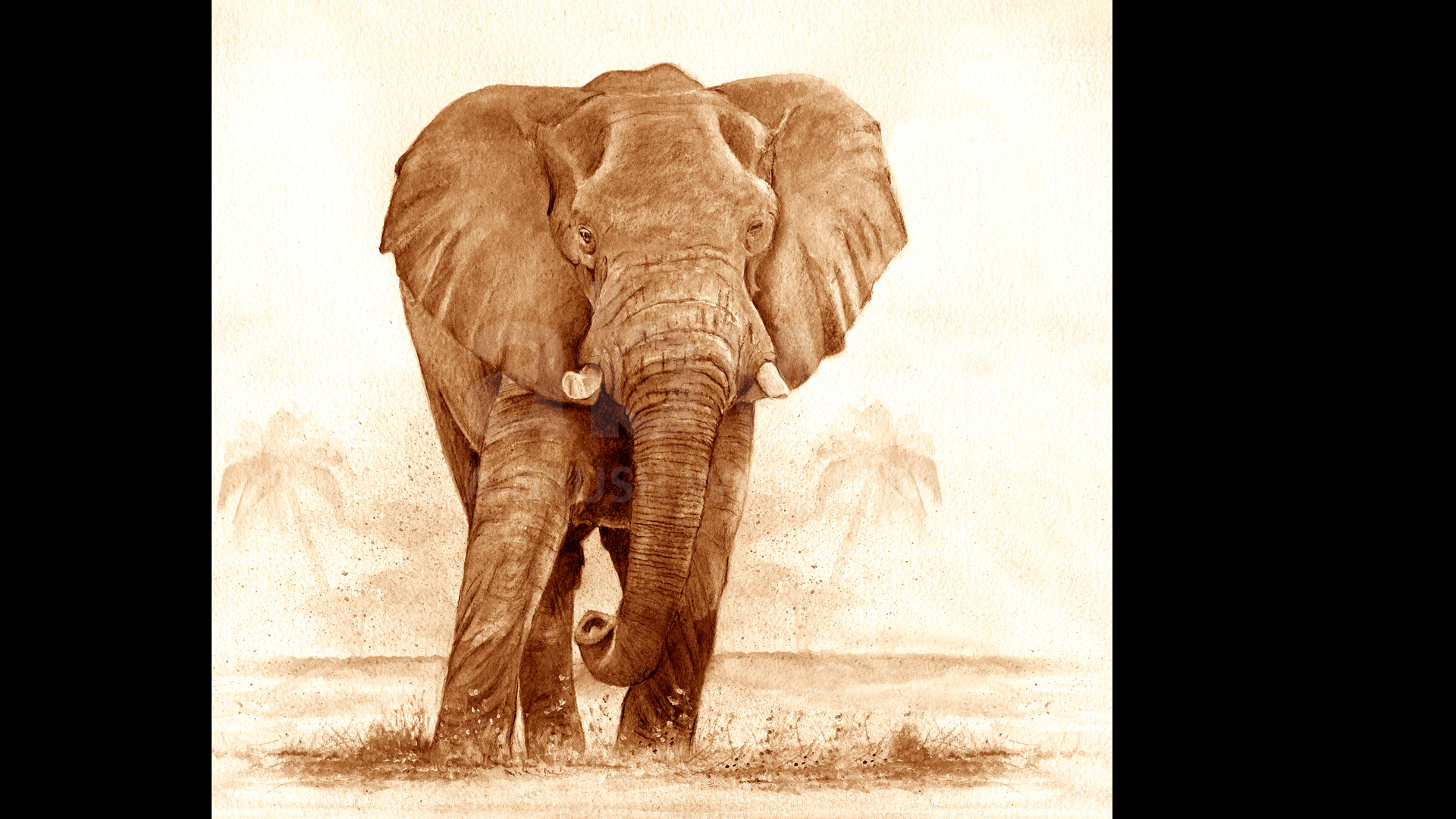 Click to enlarge Delta Bull (sepia) An elephant feeds on water lilies Product NameQuantityPrice Artist Sketch (12 X 9 Mounted) AU$ 80.00Signed Limited Edition Canvas 20 X 20 AU$ 310.00Signed Limited Edition Print 20 X 20 AU$ 310.00Signed limited edition print 16.5 X 16.5 AU$ 250.00Signed Limited Edition Canvas 24 X 24 AU$ 320.00Signed Limited Edition Print 24 X 24 AU$ 320.00Mounted signed limited edition print 16 x 20 AU$ 160.00Add to Basket Painted in TEA and OCHRE pigment ORIGINAL SOLD TO A PRIVATE COLLECTOR All sizes are in inches.