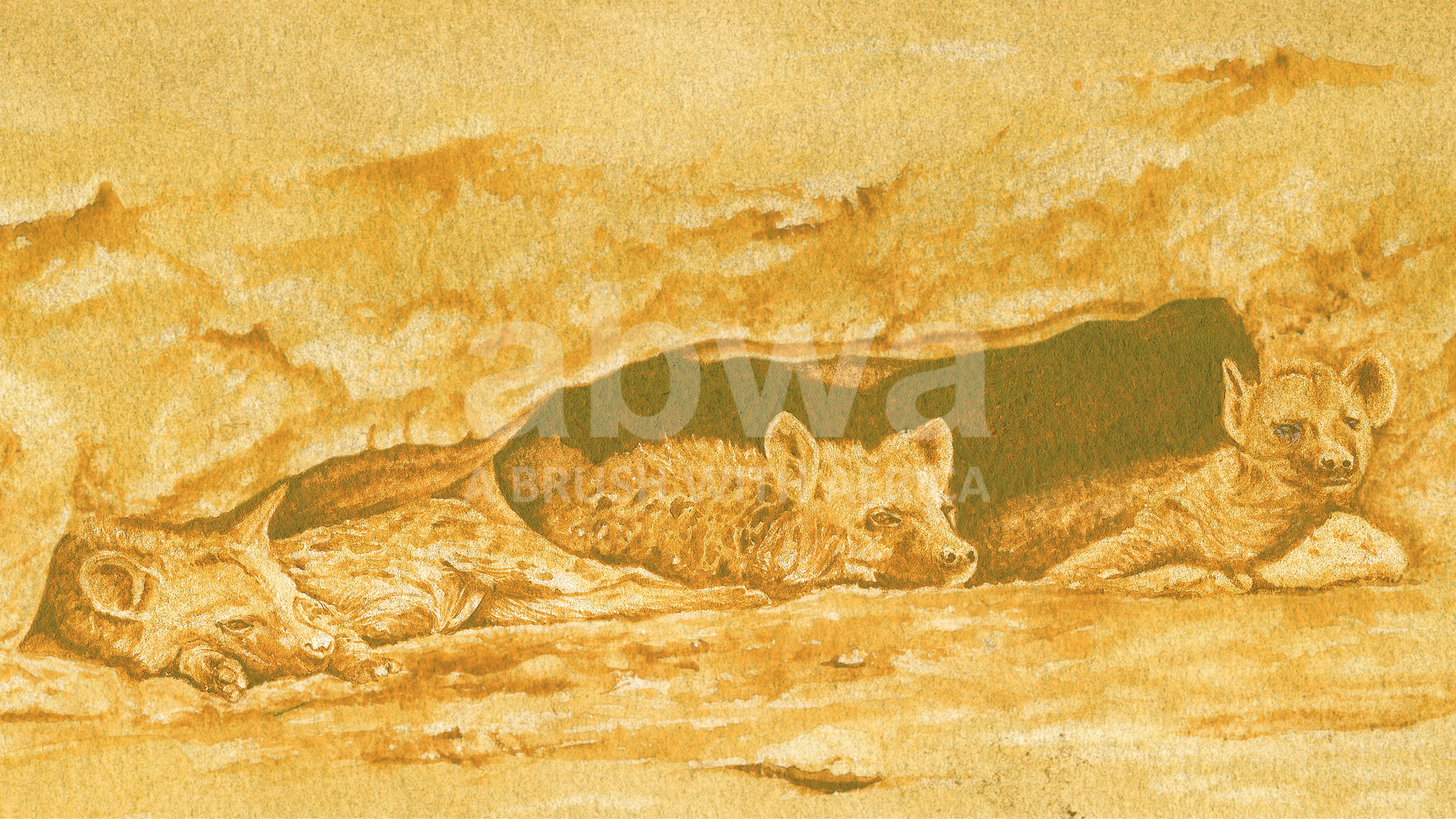 Click to enlarge Giggle Cave A pack of hyena relax in a cave away from the midday sun Product NameQuantityPrice Signed Limited Edition Canvas 20 X 10 AU$ 210.00Signed Limited Edition Print 20 X 10 AU$ 250.00Add to Basket This image has been painted using the unique medium of TEA and OCHRE pigment All sizes are in inches.