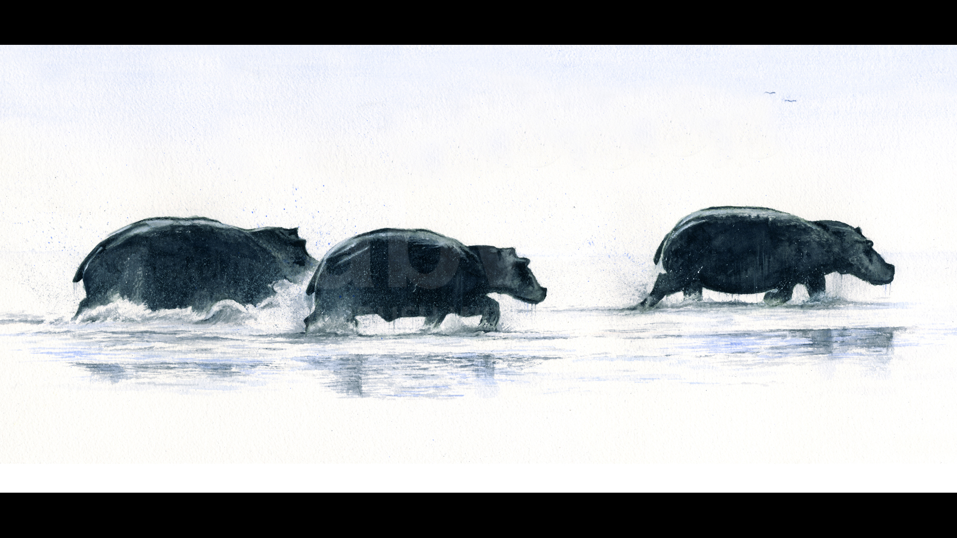 Click to enlarge Hippo Highway A pod of hippos charge back into the water Product NameQuantityPrice Signed Limited Edition Canvas 30 X 15 AU$ 340.00Signed Limited Edition Print 24 X 12 AU$ 290.00Signed Limited Edition Canvas 48 X 24 AU$ 455.00Mounted signed limited edition print 20 x 16 AU$ 160.00Add to Basket This image has been painted using the unique medium of TEA and OCHRE pigment All sizes are in inches. ORIGINAL SOLD TO A PRIVATE COLLECTOR