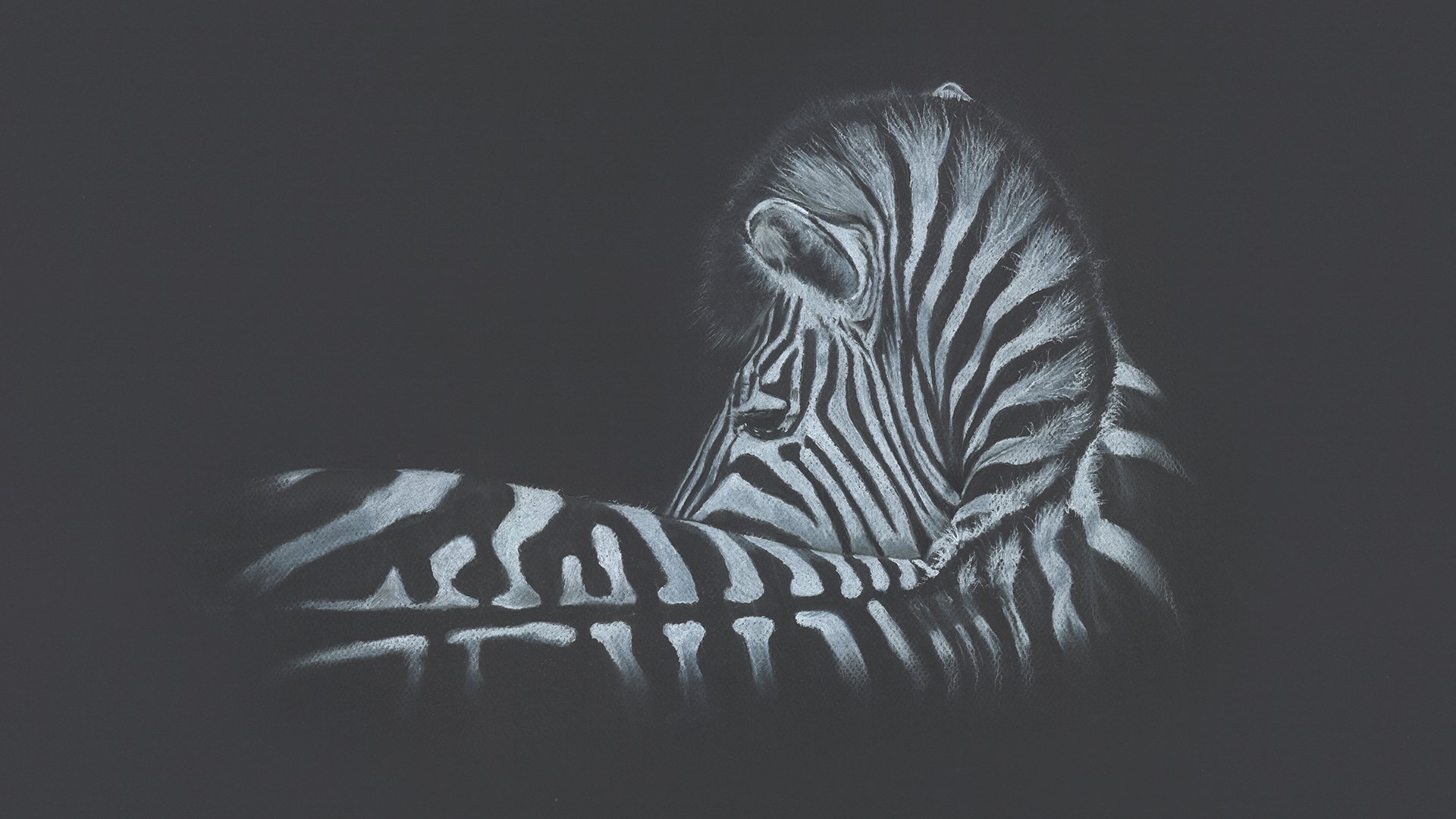 Click to enlarge Keep up A Zebra whilst lying down looks back at the herd Product NameQuantityPrice Artist Sketch (12 X 9 Mounted) AU$ 80.00Mounted signed limited edition print (20 x 16) AU$ 160.00Signed Limited Edition Canvas 24 X 18 AU$ 310.00Signed Limited Edition Canvas 30 X 24 AU$ 385.00Signed Limited Edition Print 24 X 18 AU$ 310.00Signed Limited Edition Print 30 X 24 AU$ 385.00Add to Basket SKETCHED IN CHALK & CHARCOAL ON BLACK PASTEL PAPER