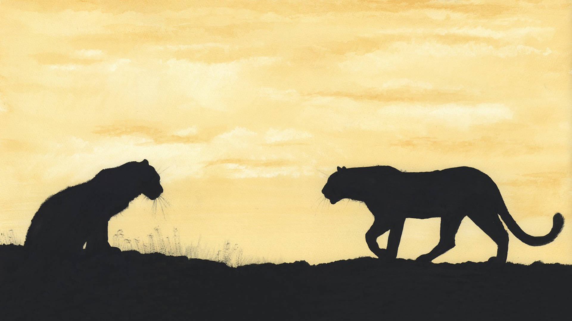 Click to enlarge The Meeting Two leopards meeting at dawn Product NameQuantityPrice Artist Sketch (12 X 9 Mounted) AU$ 80.00Signed Limited Edition Canvas 30 X 20 AU$ 350.00Signed Limited Edition Canvas 45 X 30 AU$ 600.00Signed Limited Edition Print 24 X 14 AU$ 320.00Signed Limited Edition Print 20 X 12 AU$ 310.00Mounted signed limited edition print 20 x 16 AU$ 160.00Add to Basket Painted in TEA and OCHRE pigment. All sizes are in inches ORIGINAL SOLD TO A PRIVATE COLLECTOR