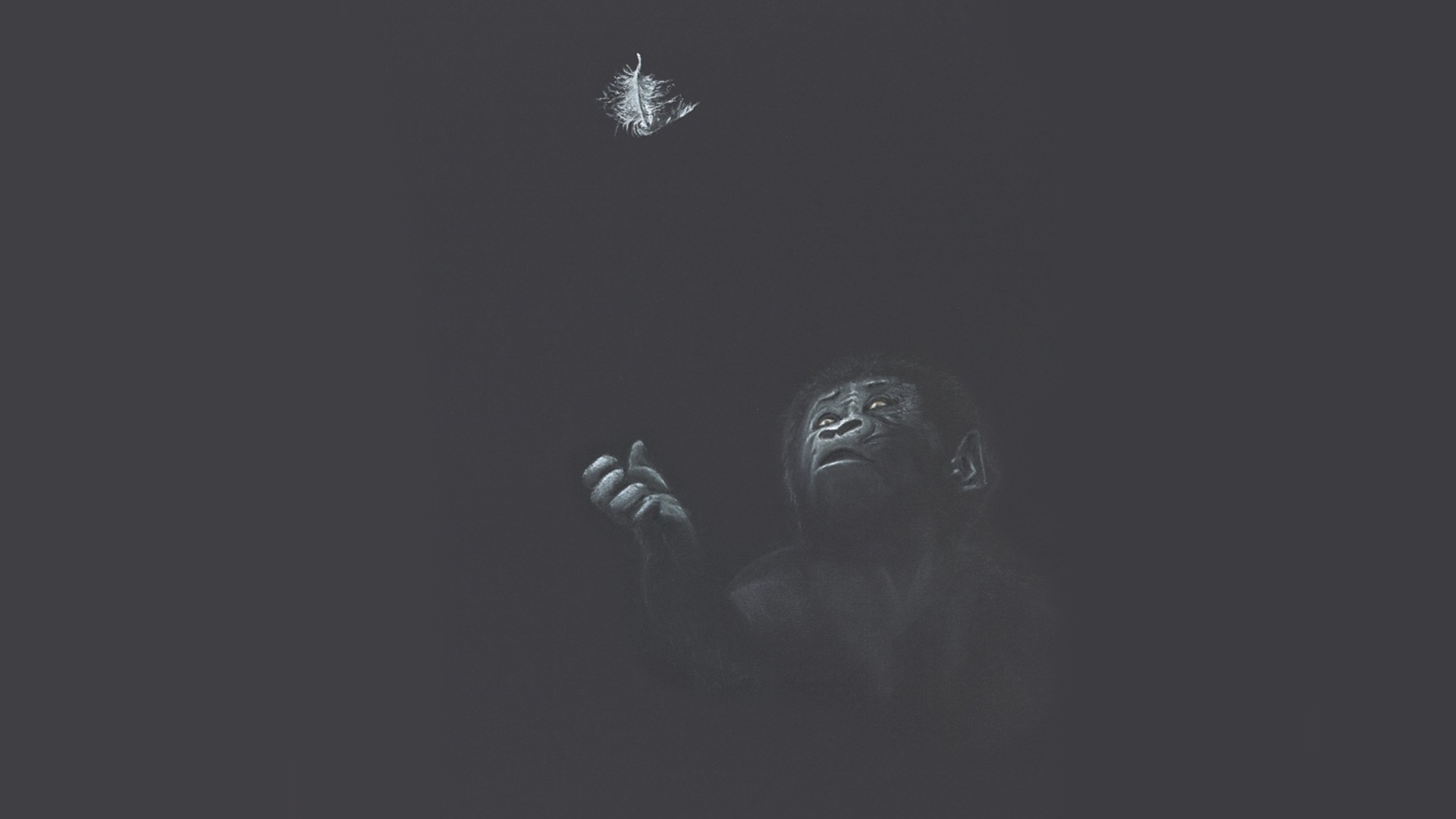 Click to enlarge The Elusive Feather A young gorilla tries to catch a falling feather Product NameQuantityPrice Artist Sketch (12 X 9 Mounted) AU$ 80.00Mounted signed limited edition print 16 x 20 AU$ 160.00Signed Limited Edition Canvas 18 X 24 AU$ 310.00Signed Limited Edition Print 24 X 30 AU$ 340.00Signed Limited Edition Print 18 X 24 AU$ 310.00Signed Limited Edition Canvas 24 X 30 AU$ 340.00Add to Basket SKETCHED IN CHALK & CHARCOAL ON BLACK PASTEL PAPER