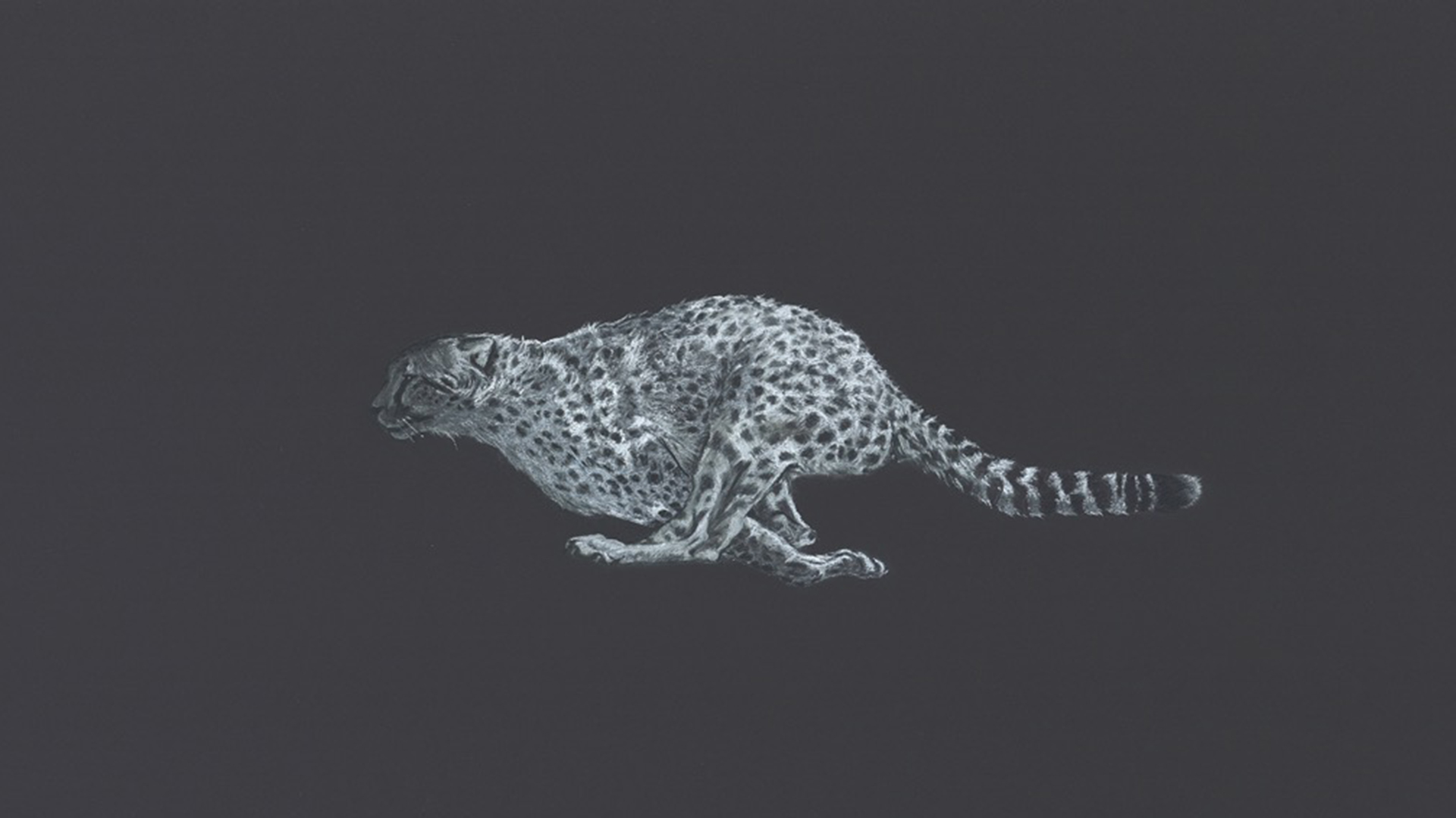 Click to enlarge White Lightning A cheetah at full speed Product NameQuantityPrice Artist Sketch (12 X 9 Mounted) AU$ 80.00Mounted signed limited edition print (20 x 16) AU$ 160.00Signed Limited Edition Canvas 24 X 18 AU$ 310.00Signed Limited Edition Canvas 30 X 24 AU$ 340.00Signed Limited Edition Print 24 X 18 AU$ 310.00Signed Limited Edition Print 30 X 24 AU$ 340.00Add to Basket SKETCHED IN CHALK & CHARCOAL ON BLACK PASTEL PAPER
