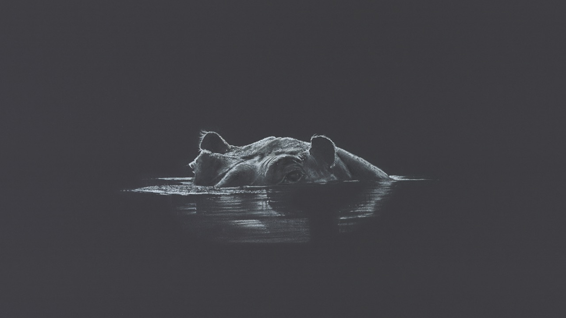 Click to enlarge Midnight dip A hippo emerges in a pool at night Product NameQuantityPrice Artist Sketch (12 X 9 Mounted) AU$ 80.00Mounted signed limited edition print (20 x 16) AU$ 160.00Signed Limited Edition Canvas 24 X 18 AU$ 310.00Signed Limited Edition Canvas 30 X 24 AU$ 385.00Signed Limited Edition Print 24 X 18 AU$ 310.00Signed Limited Edition Print 30 X 24 AU$ 385.00Add to Basket SKETCHED IN CHALK & CHARCOAL ON BLACK PASTEL PAPER