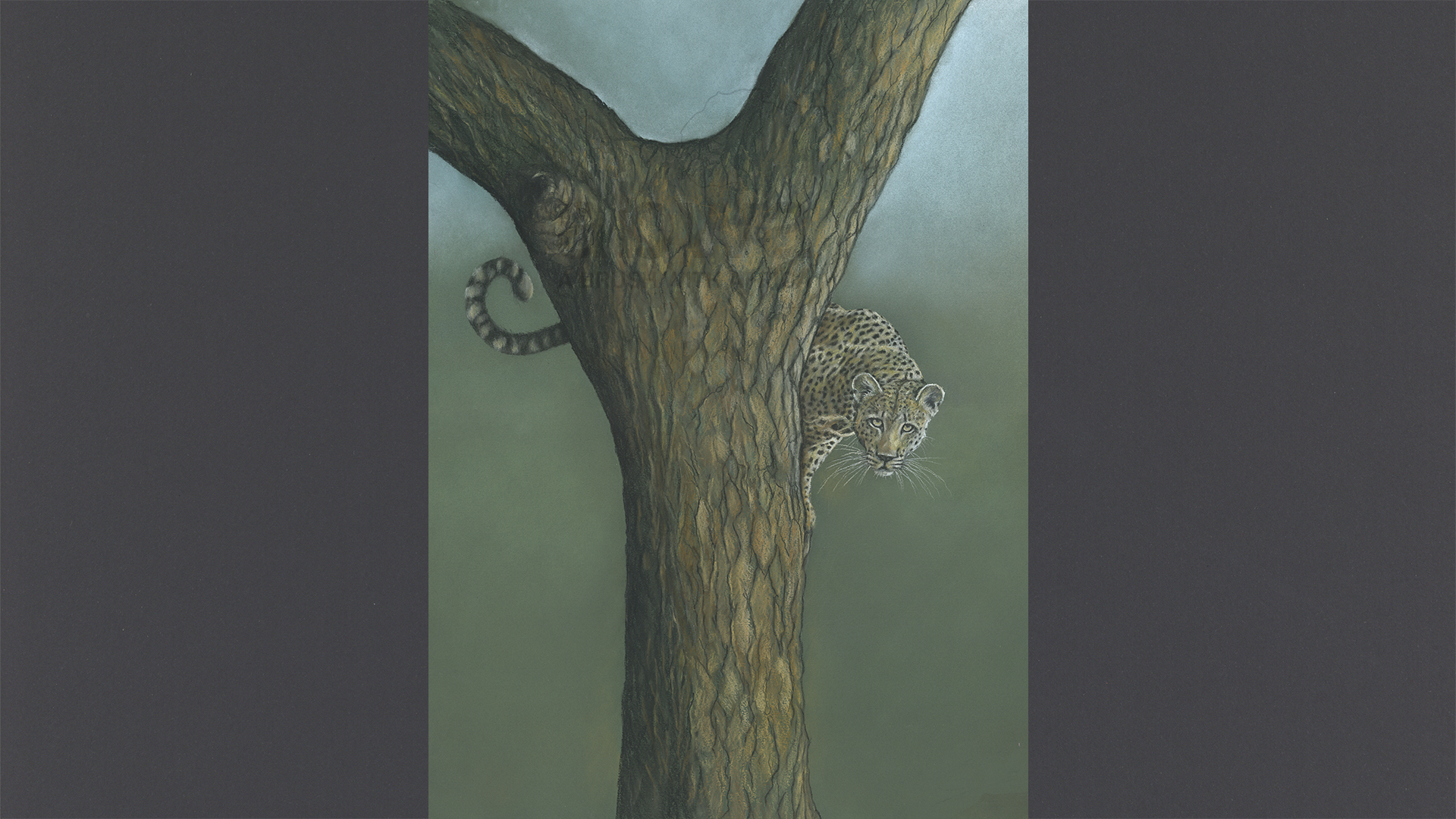 Click to enlarge Scaredy Cat A Leopard peers down from the lofty height of a tall tree Product NameQuantityPrice Artist Sketch (12 X 9) Mounted AU$ 80.00Mounted signed limited edition print 20 x 16 AU$ 160.00Signed Limited Edition Canvas 24 X 20 AU$ 320.00Signed Limited Edition Canvas 28 X 23 AU$ 365.00Signed Limited Edition Print 24 X 20 AU$ 310.00Signed Limited Edition Print 28 X 23 AU$ 365.00Add to Basket The ORIGINAL is AVAILABLE for PURCHASE The original image has been sketched using the medium of PASTEL on PASTEL MATT PAPER All sizes are in inches