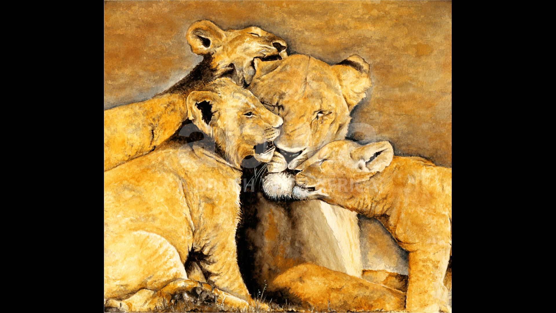 Click to enlarge Mothers Pride A lioness with three cubs Product NameQuantityPrice Artist Sketch (12 X 9 Mounted) AU$ 80.00Signed Limited Edition Canvas 27 X 27 AU$ 395.00Signed Limited Edition Canvas 20 X 20 AU$ 310.00Signed Limited Edition Print 20 X 20 AU$ 310.00Signed Limited Edition Print 27 X 27 AU$ 395.00Signed Limited Edition Print 24 X 24 AU$ 320.00Mounted signed limited edition print 16 x 16 AU$ 160.00Add to Basket This image has been painted using the unique medium of TEA and OCHRE pigment All sizes are in inches. ORIGINAL SOLD TO A PRIVATE COLLECTOR
