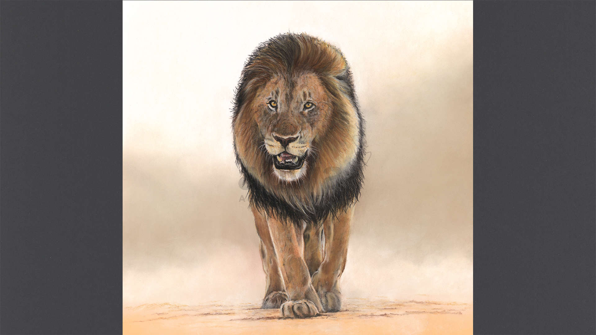 Click to enlarge Out of the Dust A black maned lion walks out from the dust Product NameQuantityPrice Artist Sketch (12 X 9 Mounted) AU$ 80.00Mounted signed limited edition print 16 x 20 AU$ 160.00Signed Limited Edition Print 20 X 22.5 AU$ 360.00Signed Limited Edition Canvas 20 X 22.5 AU$ 360.00Signed Limited Edition Canvas 24 X 27 AU$ 375.00Signed Limited Edition Print 24 X 27 AU$ 375.00Signed Limited Edition Canvas 26 X 29.5 AU$ 395.00Signed Limited Edition Canvas 28 X 33 AU$ 450.00Signed Limited Edition Print 26 X 29.5 AU$ 395.00Add to Basket The ORIGINAL has been SOLD to a PRIVATE COLLECTOR The original was sketched in the medium of pastel All measurements are in inches