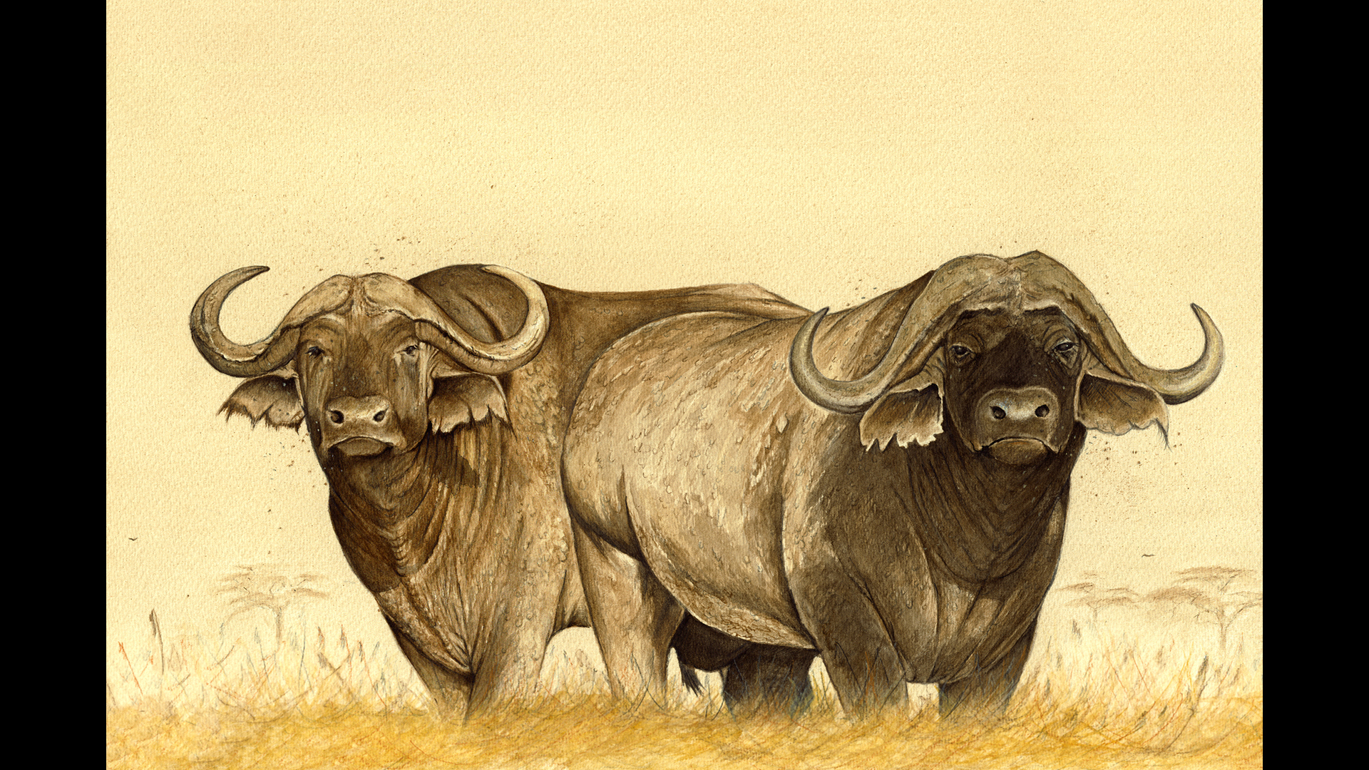 Click to enlarge A Load of Bull 2 Two buffalo bulls Product NameQuantityPrice Artist Sketch (12 X 9 Mounted) AU$ 80.00Signed Limited Edition Canvas 30 X 20 AU$ 350.00Signed Limited Edition Print 20 X 16 AU$ 255.00Mounted signed limited edition print 20 x 16 AU$ 160.00Signed Limited Edition Canvas 20 X 16 AU$ 255.00Add to Basket Painted in TEA and OCHRE pigment All sizes are in inches.